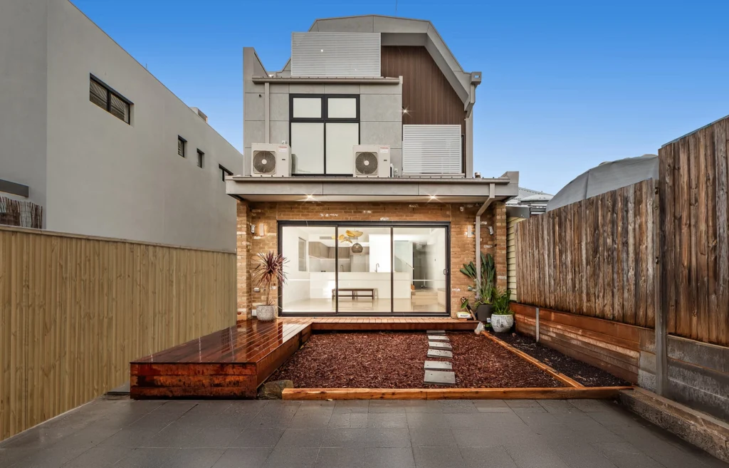 This striking three-storey residence was designed and constructed to embody Richmond’s gritty charm and urban sophistication. Set within the suburb’s industrial estate, the home boasts a refined industrial aesthetic from the outside, using exposed brick, steel accents, and bold geometries that blend seamlessly into the vibrant street culture.